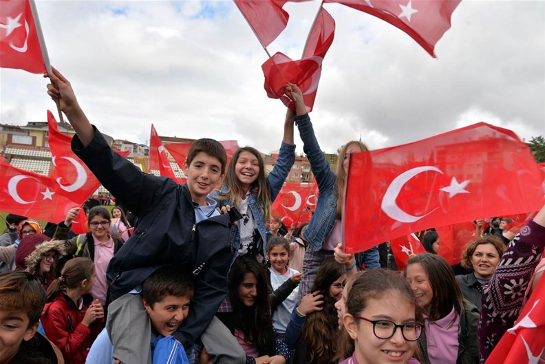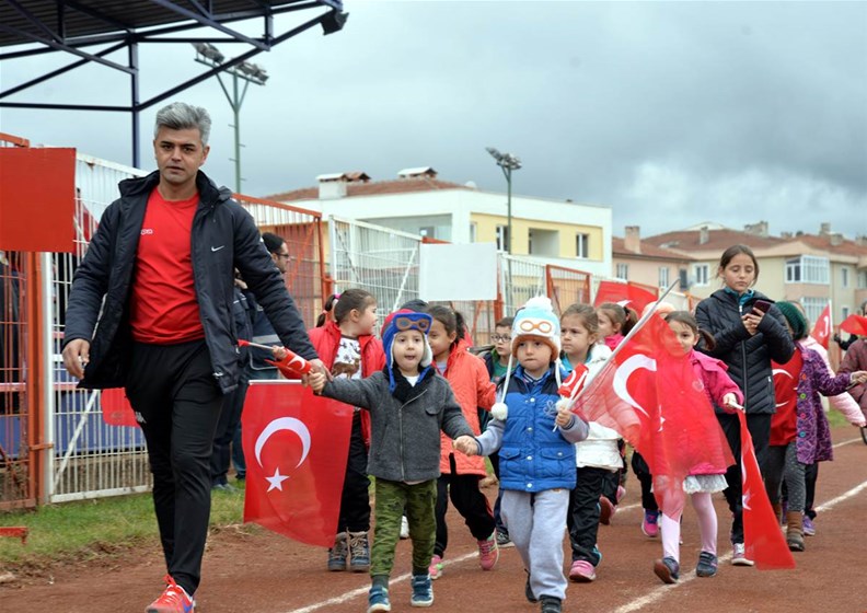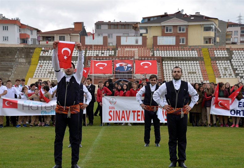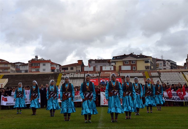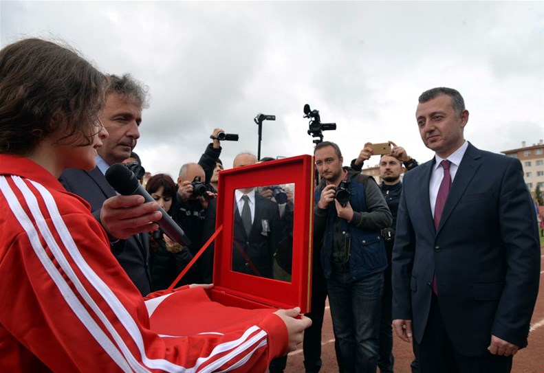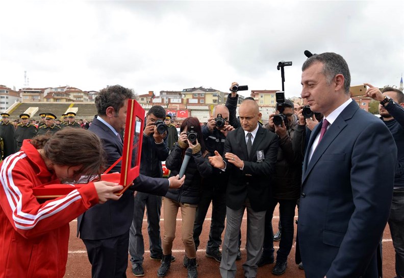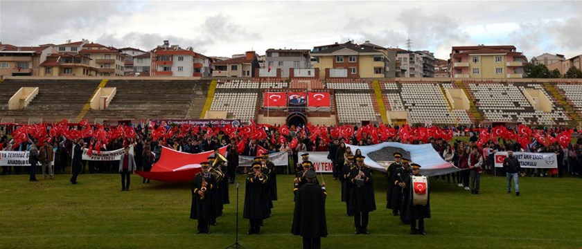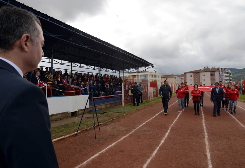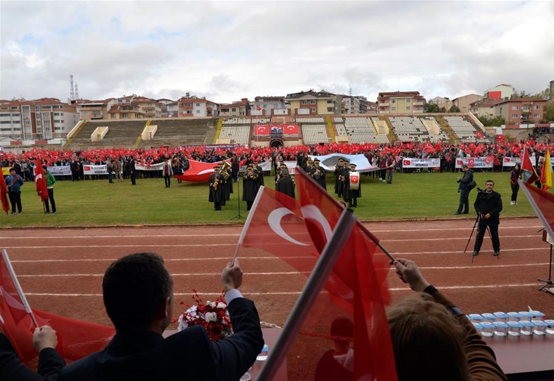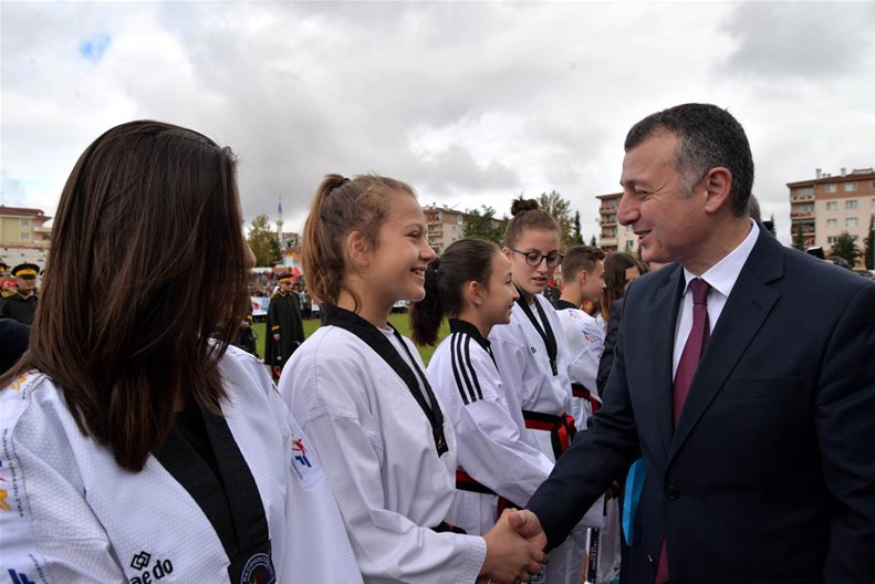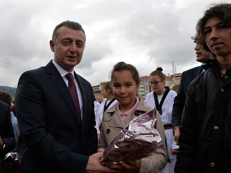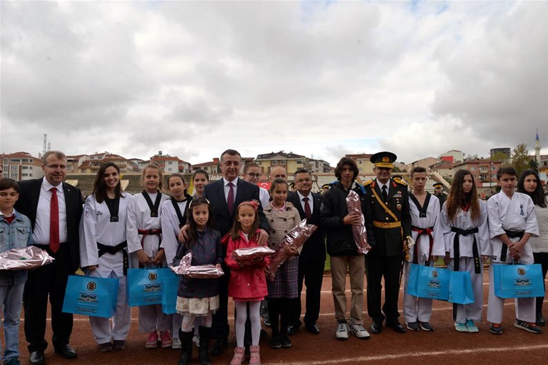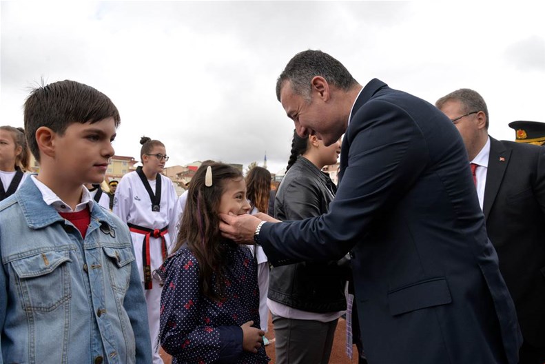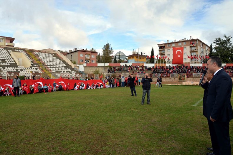 Edebali Stadyumunda devam eden kutlamalar, Vali Büyükakın ve Belediye Başkanı Yağcı'nın, öğrencilerin ve vatandaşların bayramını kutlamasıyla başladı.