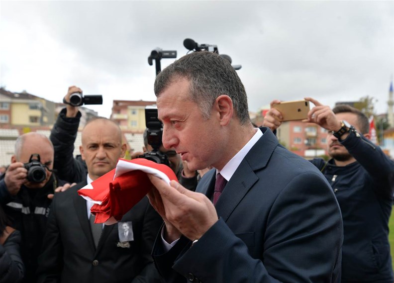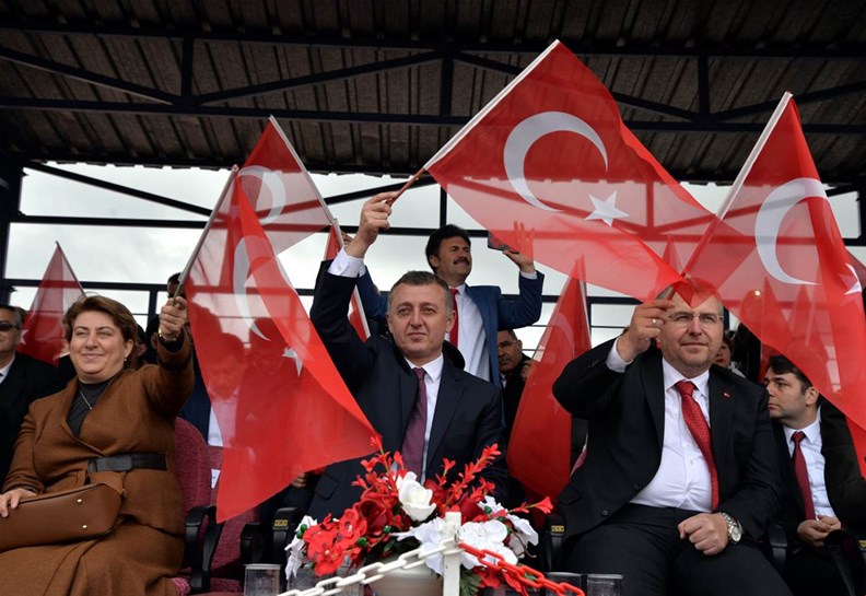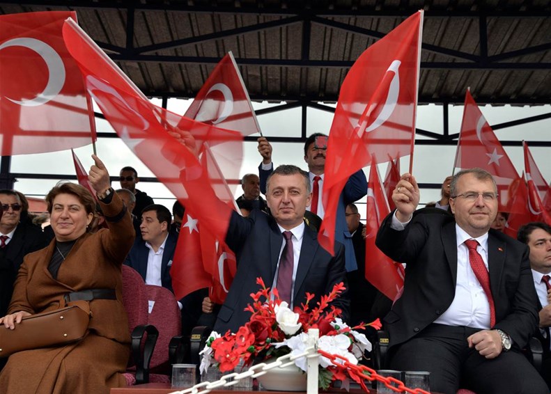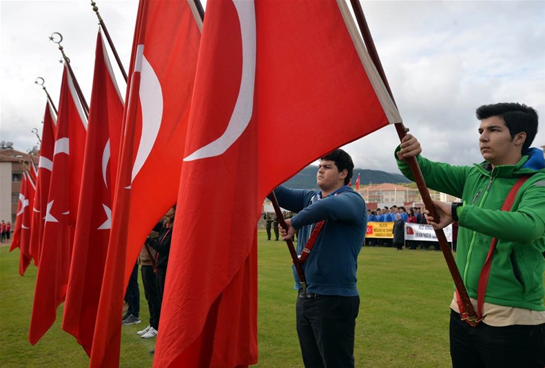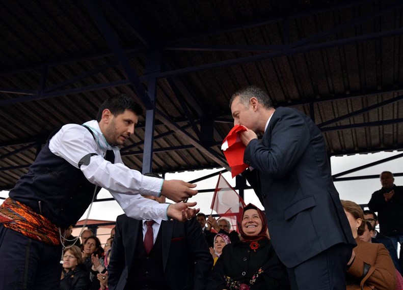 Vali Büyükakın, konuşmanın ardından gençler tarafından getirilen Türk bayrağını teslim aldı.