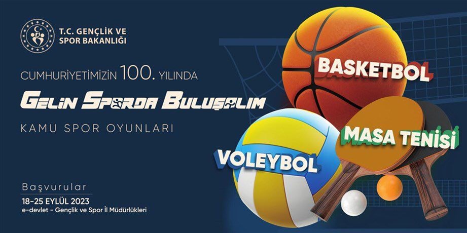 Cumhuriyetimizin 100. yılı kutlamaları kapsamında voleybol, basketbol ve masa tenisi branşlarında düzenlenecek “Cumhuriyetimizin 100. Yıl Kutlamaları Kamu Spor Oyunları” projesinin Bilecik etabı başvuruları 18 Eylül 2023 Pazartesi günü başladı.
